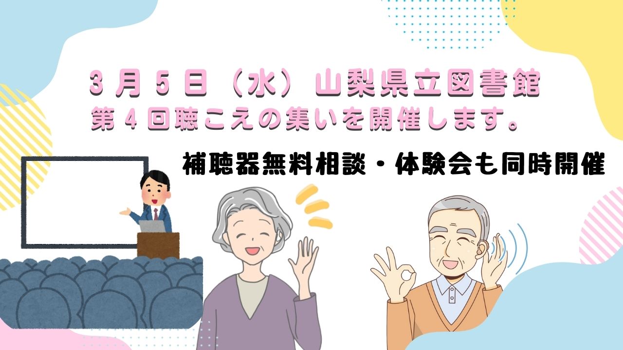 3月5日甲府駅北口の県立図書館で聴こえの集いを開催します。