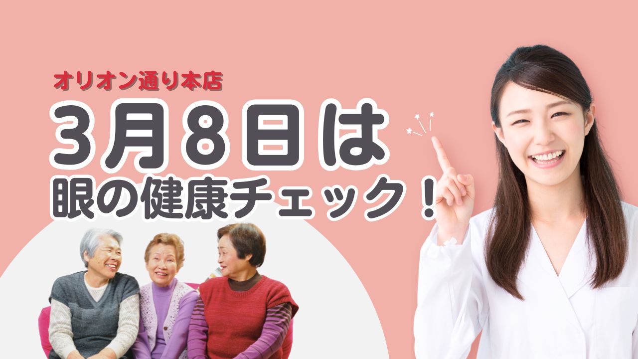 3月8日オリオン通り本店「眼の健康チェック」開催します。