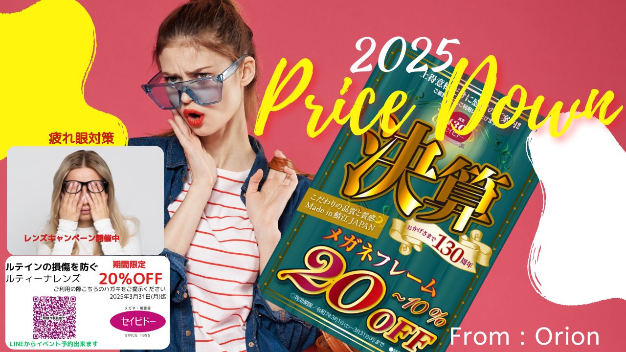 3月1日よりオリオン通り本店決算sale開催します。お得にレンズ交換やメガネが購入できます。