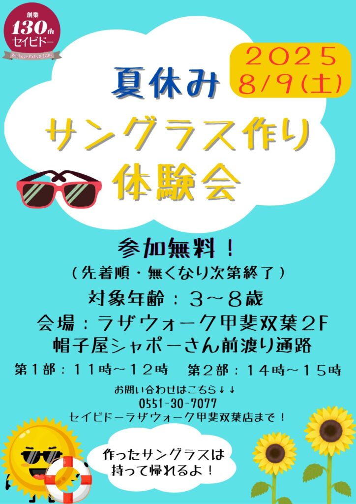 夏休みの思い出にサングラス作りに挑戦しては如何でしょう。