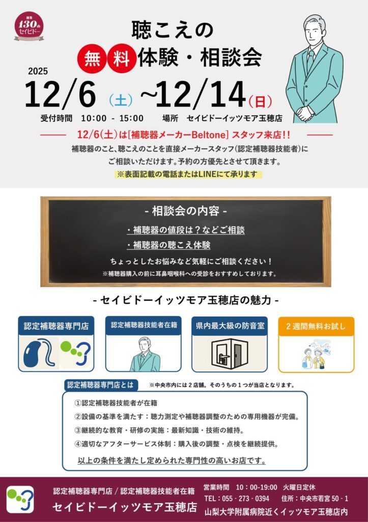 補聴器の値段や補聴器の助成金制度・・ 補聴器の無料聴こえ体験、ちょっとしたお悩みなど気軽にご相談ください。 安心の認定補聴器専門店&認定補聴器技能者在籍です。 ご家族様、お友達などと気軽にお越しください。 スタッフ一同お待ちしております。