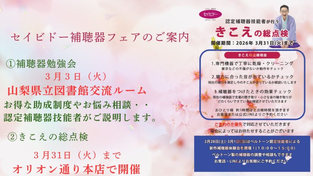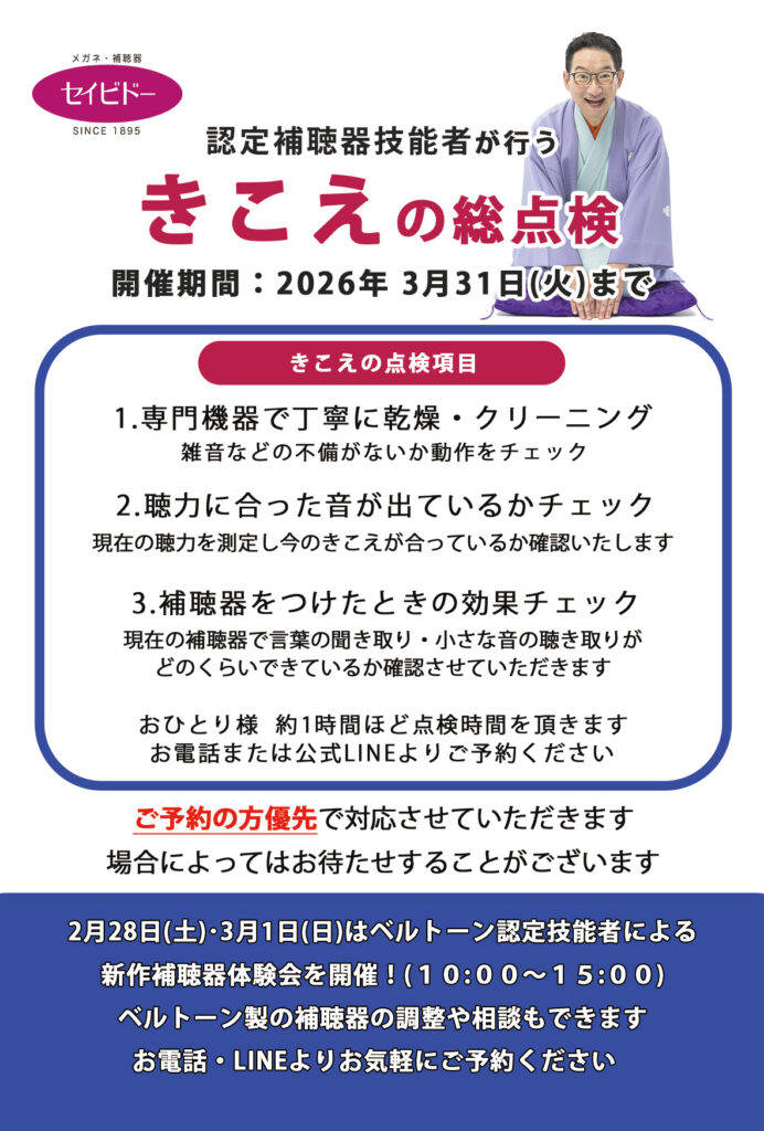 認定補聴器技能者が行う聴こえの総点検を行います。